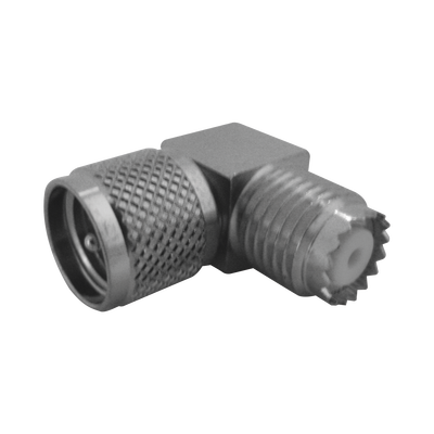 Adaptador-Angulo Recto, Conector Mini UHF Macho a Mini UHF Hembra, Cuerpo Cuadrado.